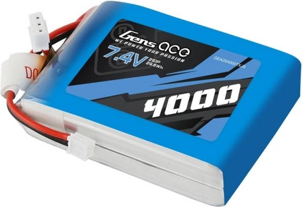 Lekka i niezawodna bateria LiPo Gens Ace o pojemności 4000 mAh i napięciu 7,4 V oferuje stabilną wydajność, długi czas pracy oraz bezpieczne użytkowanie dla urządzeń RC i nadajników. Dzięki niskiemu prądowi rozładowania 1C jest idealna do zastosowań wymagających długiego czasu pracy i niezawodności.
