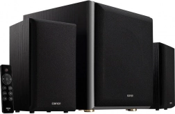 Zwiększ swoje doznania słuchowe z głośnikami Edifier 2.1, które łączą technologię Bluetooth z wydajnym, bezprzewodowym subwooferem dla niezrównanego dźwięku. Dzięki obsłudze szerokiej gamy wejść audio, takich jak Line In, AUX, optyczne i koncentryczne, możesz cieszyć się muzyką z dowolnego źródła. Dołączony pilot i wbudowany panel ułatwiają wygodne sterowanie wszystkimi funkcjami.