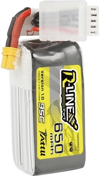 Szukasz lekkiego, a jednocześnie wydajnego źródła zasilania do dronów FPV? Tattu R-Line 650 mAh 14,8 V (4S) został zaprojektowany do maksymalnego obciążenia ze stałym prądem rozładowania 95C. Zapewnia szybkie dostarczanie energii, minimalne spadki napięcia oraz dłuższą żywotność ogniw nawet przy dynamicznym lataniu.
