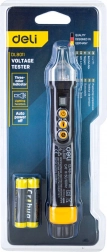 Próbnik napięcia Deli został zaprojektowany do łatwego wykrywania napięcia bez bezpośredniego kontaktu, co zapewnia wyższy poziom bezpieczeństwa podczas pracy z elektrycznością. Dzięki regulowanemu trybowi czułości zapewnia precyzyjne wyniki. Urządzenie posiada: