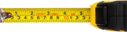 Taśma miernicza posiada praktyczną automatyczną blokadę, która umożliwia stabilny pomiar bez konieczności podtrzymywania. Dzięki automatycznemu zwijaniu taśma jest zawsze gotowa do kolejnego użycia.