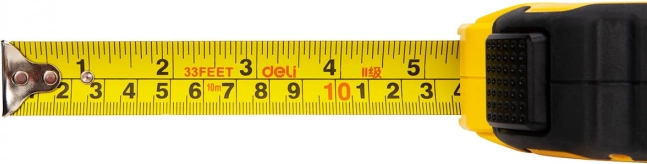 Taśma miernicza marki Deli zapewnia wysoką jakość i precyzję pomiaru aż do długości 10 metrów. Wykonana z wytrzymałego materiału, gwarantuje długą żywotność i łatwą obsługę. Taśma ma szerokość 25 mm, co wpływa na jej sztywność i dokładność.