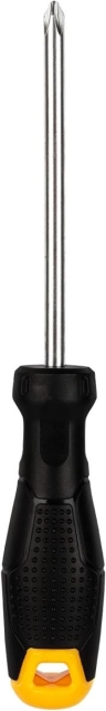 Uniwersalny wkrętak krzyżakowy PH2 × 100 mm marki Deli w eleganckim czarnym kolorze jest idealny do codziennych prac w warsztacie i w domu. Oferuje wygodny, ergonomiczny uchwyt z PP, trwałą część roboczą ze stali CR-V oraz praktyczny otwór do zawieszania.