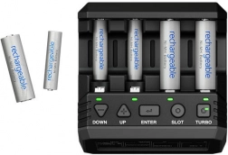 Ta inteligentna ładowarka zapewnia kompleksową opiekę nad Twoimi akumulatorami NiMH/NiCd AA/AAA. Umożliwia nie tylko standardowe ładowanie, lecz także rozładowywanie, regenerację (refresh) i dopasowanie ogniw dla długotrwale stabilnej wydajności. Dzięki pomiarowi wewnętrznej rezystancji (IR) i precyzyjnej diagnostyce łatwo ocenisz stan każdego akumulatora.