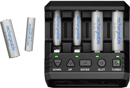 Wysokokontrastowy wyświetlacz VA prezentuje kluczowe wartości przejrzyście i czytelnie. Tryb Turbo Charge znacząco skraca czas ładowania, a obsługa jest prosta dzięki przyciskom SLOT, ENTER, UP/DOWN.