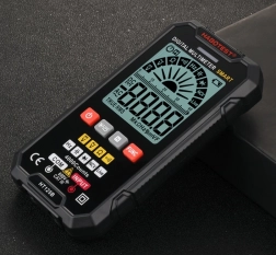 HABOTEST HT125B to inteligentny i wytrzymały multimetr zaprojektowany do szybkiej i precyzyjnej diagnostyki. Wyróżnia się smukłą obudową o grubości zaledwie 19 mm, dużym, czytelnym wyświetlaczem oraz wygodnymi silikonowymi przyciskami. Wbudowana latarka LED umożliwia bezpieczną pracę także w słabo oświetlonych miejscach.
