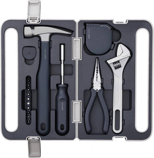 Praktyczny zestaw narzędzi marki HOTO, część ekosystemu Xiaomi, oferuje wszystkie podstawowe narzędzia do użytku domowego i warsztatowego. Zawiera uniwersalne narzędzia, takie jak młotek, śrubokręt, miarka i inne, wykonane z wysokiej jakości materiałów, aby zapewnić wygodę i trwałość podczas użytkowania.