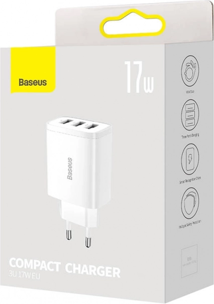 Szukasz uniwersalnej ładowarki do telefonu, słuchawek i innej elektroniki? Ten kompaktowy adapter BASEUS łączy moc 17 W z potrójnym wyjściem USB, dzięki czemu wygodnie naładujesz do trzech urządzeń jednocześnie. Zintegrowany układ automatycznie rozpoznaje podłączoną elektronikę i dobiera optymalny prąd dla szybkiego i bezpiecznego ładowania.