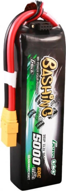 Akumulator LiPo GensAce z serii Bashing to idealny wybór do aut, łodzi i samolotów RC, gdzie liczy się połączenie wysokiej wydajności i niezawodności. Napięcie 11,1 V (3S) i pojemność 5000 mAh gwarantują stabilne zasilanie z dłuższym czasem pracy, natomiast prąd rozładowania 60C dostarcza modelom energii do zdecydowanego przyspieszania i wyższych prędkości.