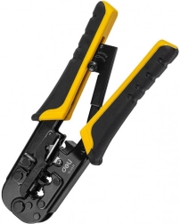 Ergonomiczne, antypoślizgowe rękojeści zmniejszają zmęczenie dłoni, a mechanizm zapadkowy pomaga utrzymać równomierny nacisk dla stabilnych i powtarzalnych połączeń – idealne do złączy RJ45/RJ14/RJ12/RJ9 oraz okablowania UTP i STP.