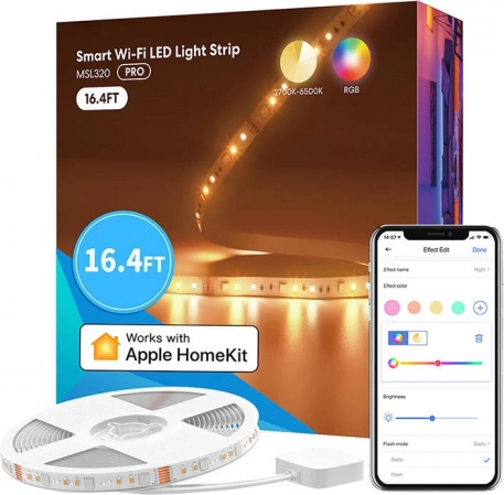 Stwórz w domu idealny nastrój z inteligentną taśmą LED Meross MSL320 o długości 5 m. Oferuje oświetlenie RGBWW z możliwością ściemniania i ustawienia temperatury bieli 2700–6500 K, działa przez Wi‑Fi i obsługuje Apple HomeKit/Siri, Amazon Alexa, Google Assistant oraz SmartThings. Steruj światłem wygodnie telefonem lub głosem, korzystaj ze scen i harmonogramów, aby uczynić dom jeszcze inteligentniejszym.