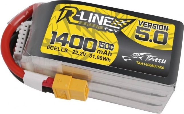 Wydajny akumulator LiPo Tattu R-Line wersja 5.0 o pojemności 1400 mAh i napięciu 22,2 V (6S) oferuje ekstremalne obciążenie 150C, stabilną i nieprzerwaną moc oraz niezawodne złącze XT60. Idealny do dronów FPV i modeli RC, gdzie liczy się szybkie dostarczanie energii, odporność na upadki oraz długa żywotność.