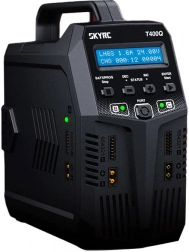 Wydajna czterokanałowa ładowarka SKYRC T400Q dla modelarzy umożliwia jednoczesne ładowanie do 4 akumulatorów z mocą 100 W na kanał i prądem do 12 A. Obsługuje szeroką gamę akumulatorów (LiPo, LiIon, LiHV, LiFe, NiMH, NiCd, Pb), oferuje tryb AUTO, ochronę przed odwrotną polaryzacją (XT60), funkcję ładowania w niskich temperaturach oraz bardzo łatwą obsługę z wyświetlaczem LCD.