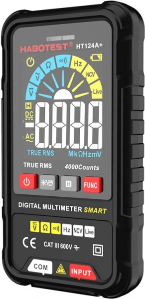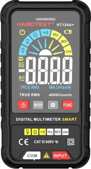 HABOTEST HT124A+ to wielofunkcyjny cyfrowy multimetr zaprojektowany do precyzyjnych i bezpiecznych pomiarów w warsztacie, domu i w terenie. Wyróżnia się dużym, czytelnym wyświetlaczem LCD z podświetleniem, funkcją True RMS dla dokładnych pomiarów także przy sygnałach nieliniowych oraz NCV do bezkontaktowego wykrywania napięcia. Ergonomiczne, odporne na upadki i przyjemne w dotyku korpus zwiększa komfort nawet przy dłuższym użytkowaniu.