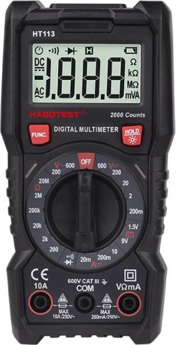 Wyposaż się w lekki i poręczny cyfrowy uniwersalny multimetr Habotest HT113, który pozwoli Ci wygodnie i bezpiecznie mierzyć napięcie, prąd, rezystancję i wiele innych parametrów. Habotest HT113 jest wyposażony w praktyczną podpórkę, dzięki czemu możesz postawić go na półce. Obudowa wykonana jest z miękkiego materiału, przyjemnego w dotyku, a jednocześnie bardzo wytrzymałego, odpornego na zużycie i upadki.