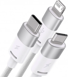 Szukasz jednego kabla do wszystkich swoich urządzeń? Baseus StarSpeed 3w1 oferuje złącza USB‑C, Micro USB i Lightning – idealne do telefonów, tabletów, słuchawek i innej elektroniki. Wspiera szybkie ładowanie do 3,5 A oraz transfer danych przez Lightning do 480 Mb/s, więc łatwo zsynchronizujesz zdjęcia i dokumenty.