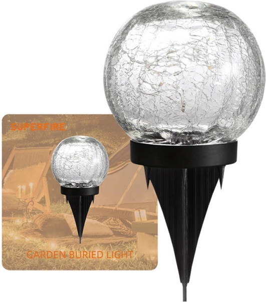 Stylowa, kulista lampa solarna SUPERFIRE z czujnikiem zmierzchu zapewnia automatyczne świecenie po zmroku, jest energooszczędna i dzięki klasie wodoodporności IP65 odporna na deszcz. Ładuje się słońcem, a bateria 600 mAh zapewnia przyjemne oświetlenie bez rachunków za prąd.