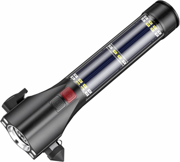 Praktyczne magnesy umożliwiają przymocowanie do metalowych powierzchni, a zintegrowane młotek bezpieczeństwa, nóż do pasów i brzęczyk zapewniają szybką pomoc w nagłych wypadkach. Panel solarny oszczędza energię i środowisko; energię z wbudowanego akumulatora możesz wykorzystać także do awaryjnego doładowania telefonu.