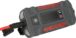 Duży ekran pokazuje napięcie, ostrzeżenia temperaturowe i o polaryzacji oraz wskaźnik szybkiego ładowania. Zintegrowane zabezpieczenia dbają o bezpieczną pracę.