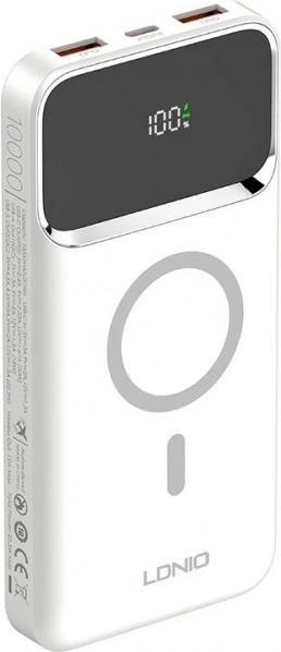 Powerbank LDNIO z dwoma portami USB-A i jednym USB-C umożliwia jednoczesne ładowanie kilku urządzeń. Wspiera szybkie ładowanie PD i QC3.0 dla błyskawicznego uzupełnienia energii.
