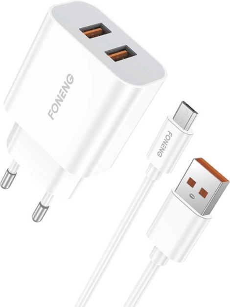 Ładuj jednocześnie dwa urządzenia dzięki kompaktowej ładowarce FONENG o mocy 12 W i dwóch portach USB. Szeroki zakres wejściowy 100–240 V jest idealny w podróży, a inteligentny układ chroni przed przegrzaniem, przeładowaniem oraz zwarciem. W zestawie znajduje się kabel Micro USB do natychmiastowego użycia.