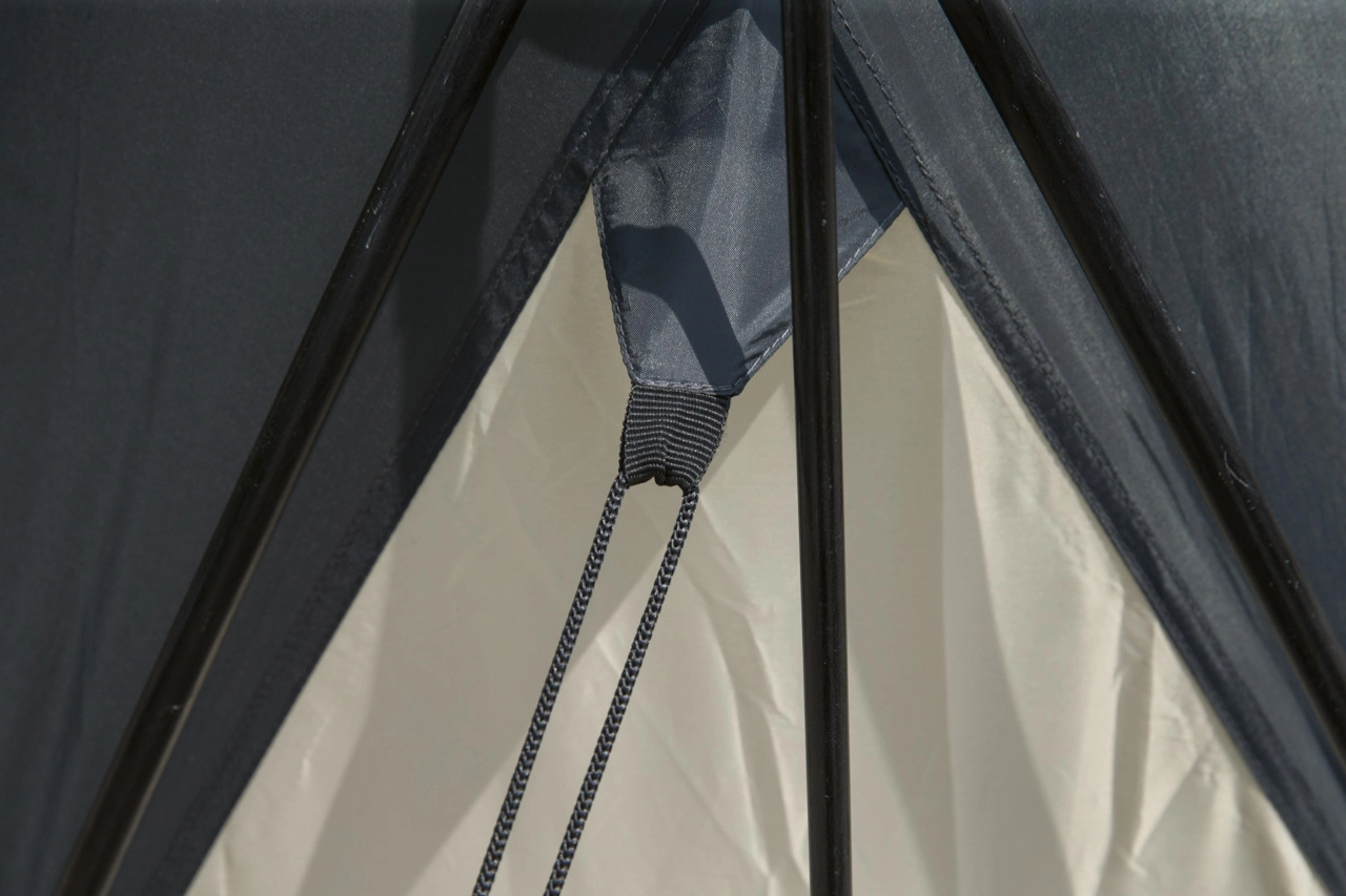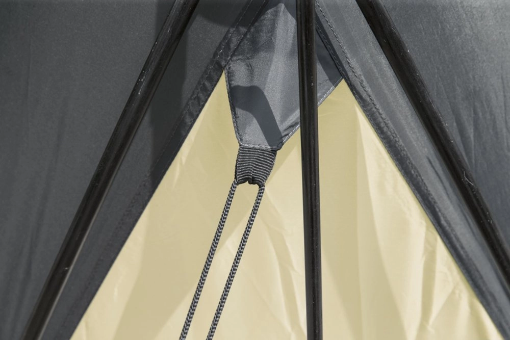 Solidne pręty, linki napinające i śledzie zapewniają szybkie rozstawienie oraz stabilność nawet przy gorszych warunkach pogodowych.