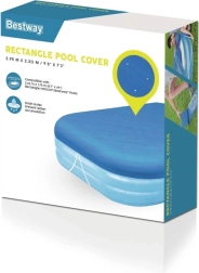 Wytrzymała plandeka ochronna Bestway do prostokątnych dmuchanych basenów o wymiarach 262 × 175 × 50,5 cm niezawodnie chroni wodę przed owadami, liśćmi, ptakami oraz lekkim deszczem. Dzięki otworom odpływowym nadmiar wody nie zalega na powierzchni, sznurki mocujące zapobiegają zerwaniu przez wiatr, a plandeka dodatkowo zapewnia izolację termiczną i zwiększone bezpieczeństwo dla dzieci.
