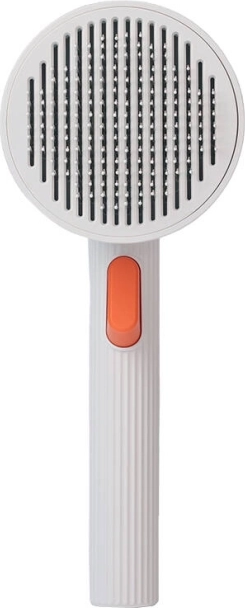 Czyszczenie szczotki to kwestia chwili – wystarczy nacisnąć duży samooczyszczający przycisk na rękojeści, a wyczesana sierść łatwo się uwolni. Ergonomiczna, antypoślizgowa rękojeść wygodnie leży w dłoni także podczas dłuższego czesania. Minimalistyczny, biały design pasuje do każdego domu.