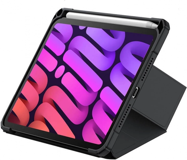 Przednia klapka typu tri-fold działa jako podstawka w dwóch kątach – niskim do wygodnego rysowania i wyższym do oglądania filmów czy wideorozmów. Tylny panel wzmocniony materiałem PC oraz wzmocnione rogi chronią iPada przed uderzeniami, zginaniem i zarysowaniami, a powierzchnia z PU jest odporna na zużycie i zabrudzenia oraz łatwa w czyszczeniu.