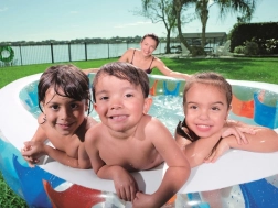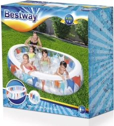 Ciesz się latem z przestronnym dmuchanym basenem 229 × 152 × 51 cm, który zmieści się w większości ogrodów i na tarasach. Przezroczyste ścianki z kolorowymi panelami dodają zabawnego charakteru i pozwalają mieć dzieci na oku podczas zabawy w wodzie.