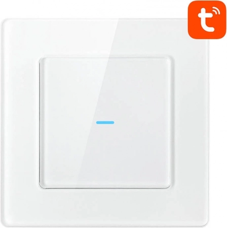 Stylowy, dotykowy włącznik do inteligentnego domu z Wi‑Fi, sterowaniem przez Tuya / Smart Life oraz asystentów głosowych. Oferuje 1 przycisk, hartowane szkło, niskie zużycie energii i łatwy montaż.
