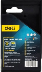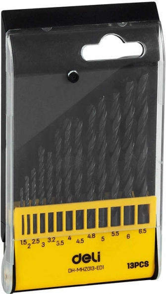 13‑częściowy zestaw wierteł HSS 4241 od DELI TOOLS do precyzyjnego i czystego wiercenia w stali nierdzewnej, stali, aluminium oraz miedzi. Wysoka odporność na zużycie i temperaturę, precyzyjne wymiary i uniwersalny zakres 1,5–6,5 mm do szerokiego zastosowania.