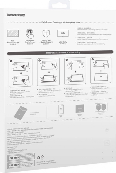 Chroń swój tablet przed codziennym zużyciem za pomocą szkła hartowanego BASEUS Crystal o grubości 0,3 mm. Zapewnia twardość 9H, wysoką odporność na uderzenia i zarysowania, czysty obraz w jakości HD, pełną czułość dotyku, a dzięki powłoce AF ogranicza odciski palców. Dodatkowo filtruje niebieskie światło dla większego komfortu oglądania.