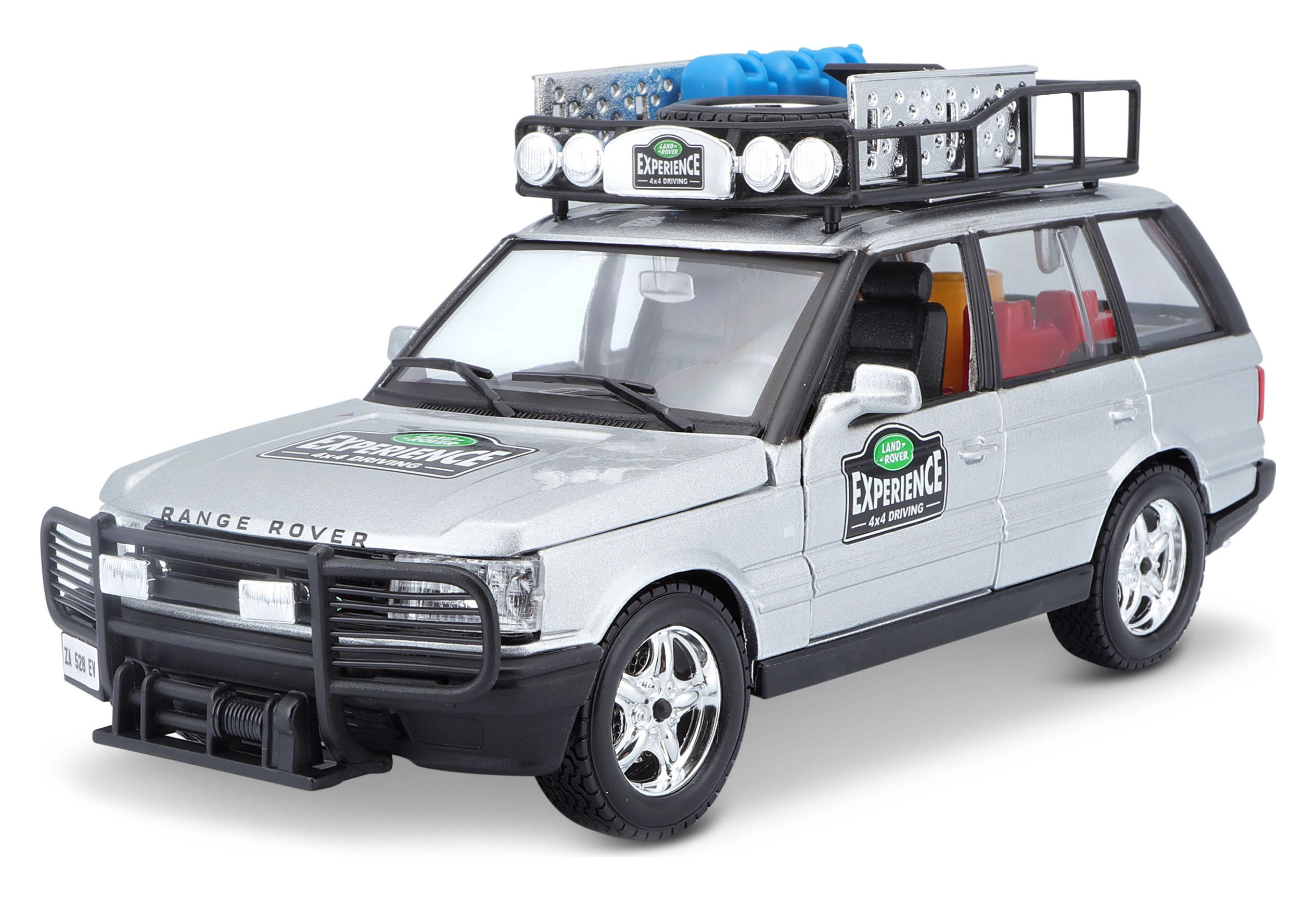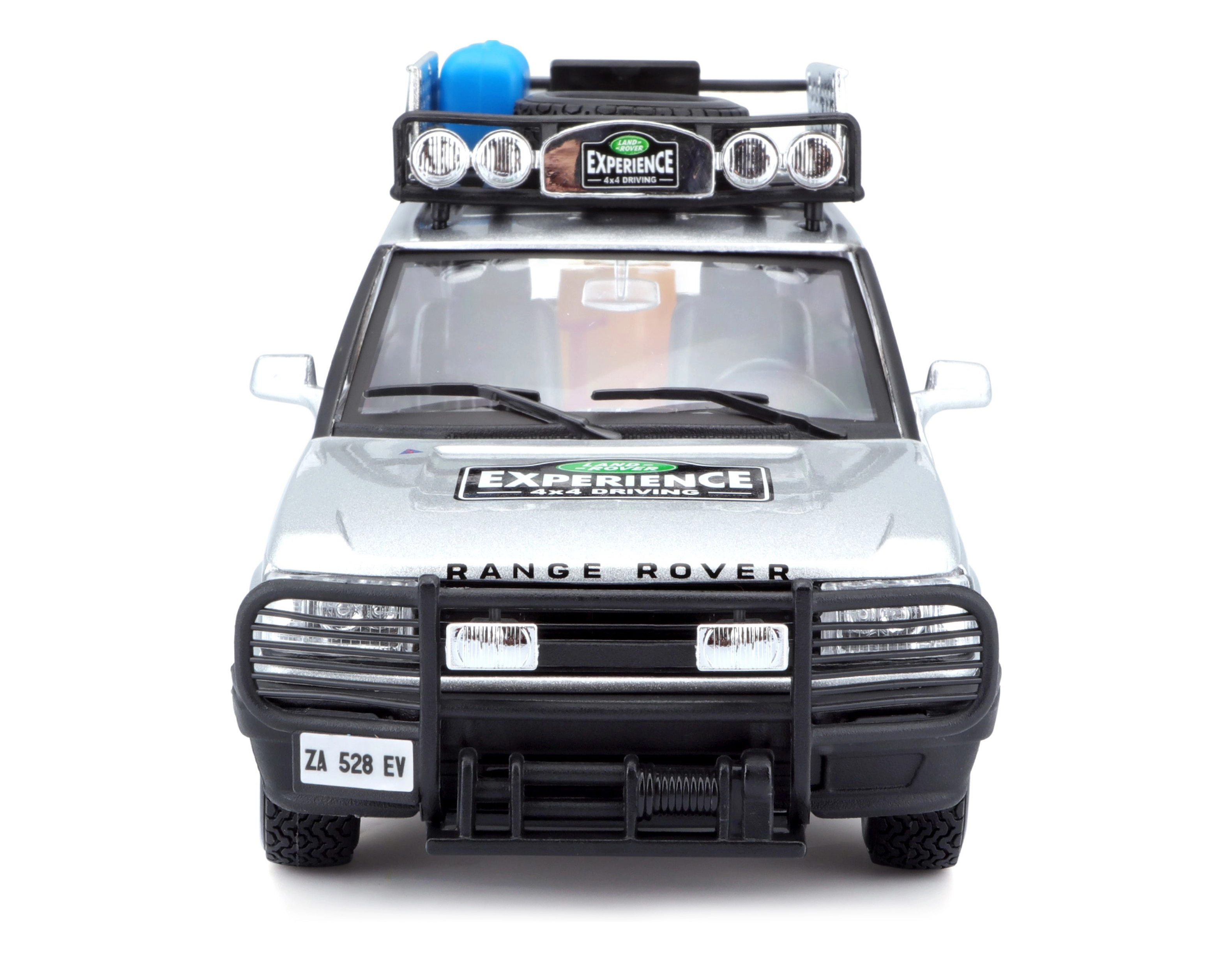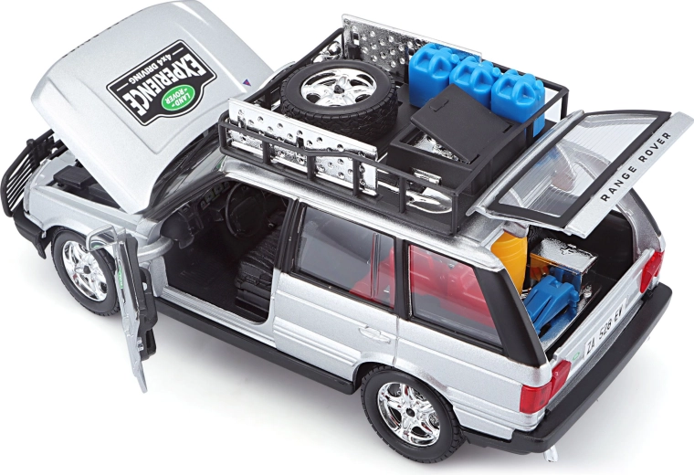 Ten precyzyjnie wykonany model RANGE ROVERA w skali 1:24 oferuje autentyczne detale, które zachwycą każdego miłośnika pojazdów terenowych. Srebrne nadwozie uzupełnione bagażnikiem dachowym z akcesoriami, przednim pałąkiem ochronnym oraz realistycznymi nadrukami tworzy atrakcyjny wygląd do zabawy i ekspozycji.