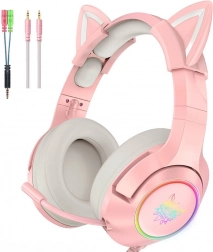 Słuchawki gamingowe oferują unikalny design z uszami kota, który przyciąga uwagę. Oprócz wyglądu, cechują się zaawansowanymi głośnikami zapewniającymi czysty dźwięk oraz oddychającymi poduszkami gwarantującymi całodniowy komfort. Dla lepszego dopasowania dostępny jest panel na kablu do kontroli głośności i mikrofonu.