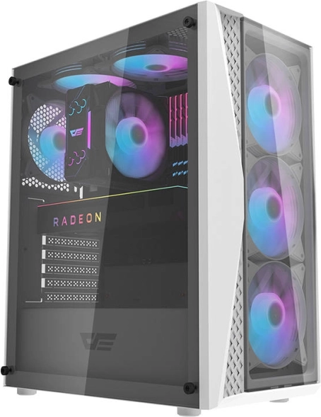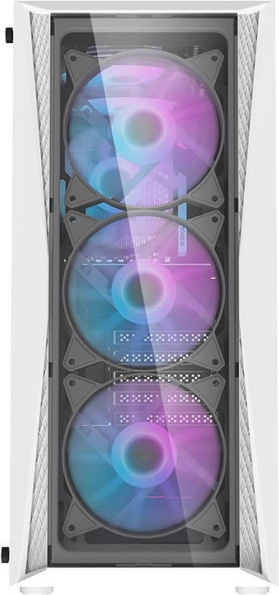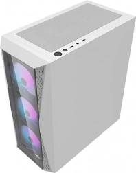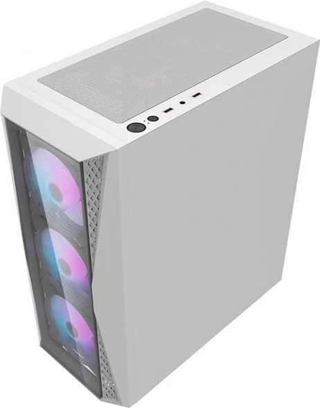 Panel boczny i front z hartowanego szkła podkreślają komponenty oraz efekty ARGB. Elegancka biała obudowa świetnie pasuje do zestawów gamingowych i biurowych.