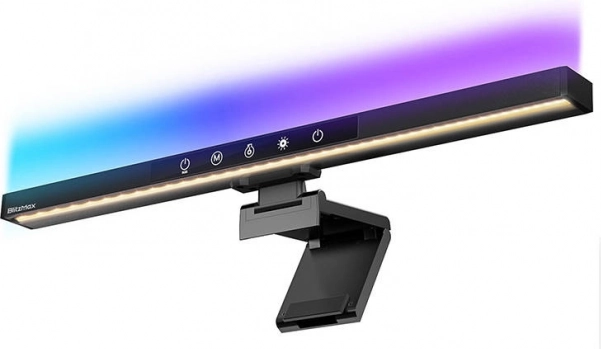 Stylowa lampa na monitor od BLITZMAX zapewnia wygodne i zdrowe oświetlenie biurka dzięki asymetrycznemu światłu bez odblasków. Oferuje efekty RGB z synchronizacją z muzyką, białe światło 3000–6000 K, 5 poziomów jasności oraz sterowanie dotykowe. Regulowany uchwyt i kąt świecenia gwarantują idealne pokrycie powierzchni, zasilanie z USB (5 V) oraz pamięć ostatniego trybu ułatwiają codzienne użytkowanie.