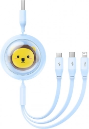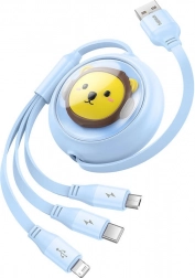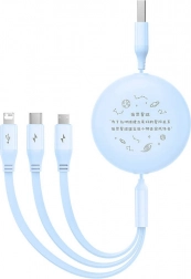 Uniwersalny wysuwany kabel 3w1 marki BASEUS z wtykami USB‑C, micro USB i Lightning obsługuje szybkie ładowanie do 3,5 A oraz jednoczesne podłączenie kilku urządzeń. Dzięki kompaktowemu mechanizmowi zwijania idealnie sprawdza się w podróży, transfer danych odbywa się z prędkością 480 Mb/s, a wytrzymałe materiały PC + TPE zapewniają długą żywotność.