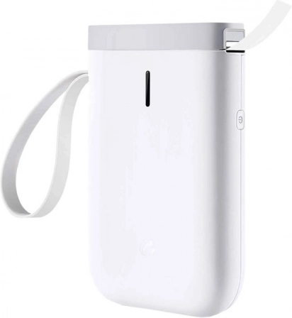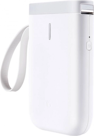 Urządzenie łączy się przez Bluetooth z telefonami z Android i iOS. Kompaktowe wymiary (132 × 79 × 29 mm, 182 g) z praktyczną smyczką sprawiają, że jest idealna w podróży i w biurze. Zintegrowana bateria 1500 mAh zapewnia wygodną pracę, a ładowanie odbywa się przez micro USB. W zestawie znajduje się rolka startowa (do 160 etykiet), więc możesz zacząć drukować od razu.