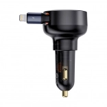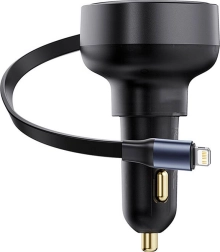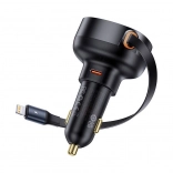 Ładowarka samochodowa Baseus Enjoyment Pro została zaprojektowana z myślą o łatwości użycia i wydajności. Dzięki wysuwanemu przewodowi o długości 70 cm podłączysz urządzenia z końcówkami Lightning i USB‑C. Dodatkowy port USB‑A pozwala ładować jednocześnie nawet trzy urządzenia, co skraca czas ładowania i oszczędza Twój czas.