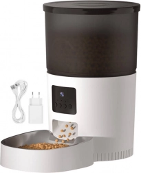 Niezawodność w każdej sytuacji – Zasilanie z zasilacza 5 V lub 3× baterii D (sprzedawane oddzielnie). W przypadku zaniku prądu podajnik automatycznie przełącza się na zasilanie bateryjne, dzięki czemu nie przerywasz rutyny karmienia.