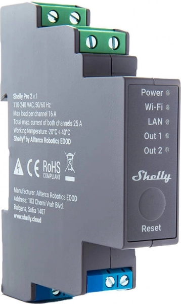Shelly Pro 2 to zaawansowany, dwukanałowy przekaźnik przeznaczony do montażu na szynie DIN, który obsługuje łączność przez Wi‑Fi, LAN i Bluetooth. Każdy kanał obsługuje obciążenie do 16 A, co czyni przekaźnik idealnym do różnych zastosowań automatyki domowej i budynkowej. Jest kompatybilny z popularnymi asystentami głosowymi, zapewnia dużą elastyczność i wygodne sterowanie.