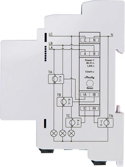 Shelly inteligentny trójfazowy licznik energii 120 A z Wi‑Fi/LAN i Bluetooth na szynę DIN