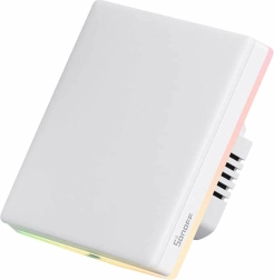 Inteligentny ścienny włącznik SONOFF pozwala wygodnie sterować oświetleniem z dowolnego miejsca. Obsługuje Wi‑Fi 2,4 GHz i Bluetooth 4.2 dla szybkiego parowania, działa z iOS i Android oraz dzięki integracji z Alexa, Google Home i Alice umożliwia sterowanie głosowe. Duży panel dotykowy reaguje na naciśnięcie subtelną odpowiedzią dźwiękową i wibracyjną.