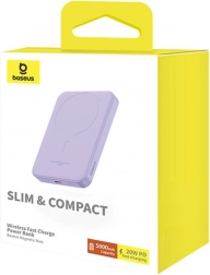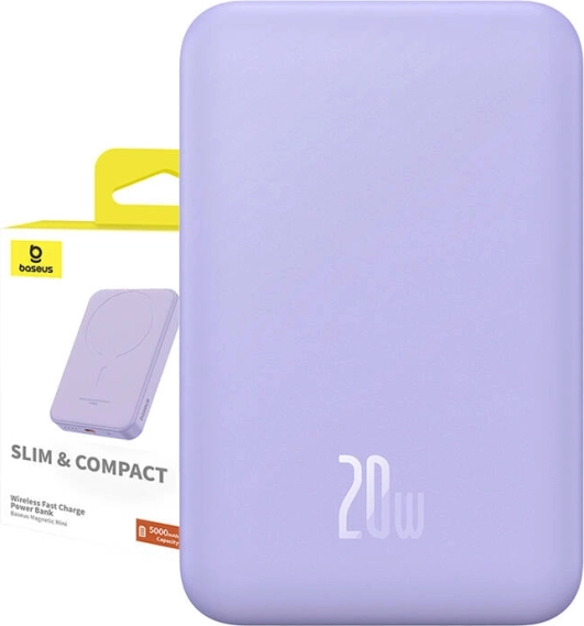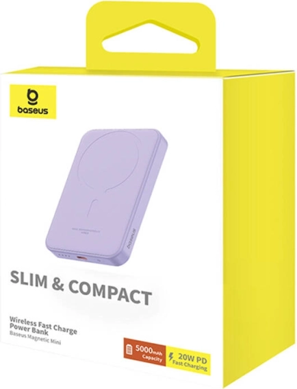 Korzyść z wolności ładowania bez kabli. Magnetyczny mini powerbank BASEUS dzięki silnym magnesom pewnie przylega do telefonu i zapewnia stabilne i wygodne ładowanie bezprzewodowe. Dzięki pojemności 5000 mAh doładuje smartfon wtedy, gdy najbardziej tego potrzebujesz, a ładowanie przewodowe 20 W zadba o szybkie uzupełnienie energii.