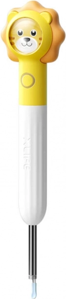W zestawie znajdują się delikatne nasadki metalowe i silikonowe oraz miękkie patyczki do uszu, które nie rysują i nie drażnią. Wbudowana bateria 30 mAh zapewnia do 45 minut pracy, a ponowne ładowanie odbywa się przez USB (DC 5 V / 0,5 A). Lekka konstrukcja 25 g, żyroskop 3‑osiowy dla stabilizacji oraz Wi‑Fi IEEE 802.11 b/g o częstotliwości 2,4 GHz zapewniają wygodne użytkowanie w domu i w podróży. Dzieci ucieszy radosny motyw lwa na rękojeści.