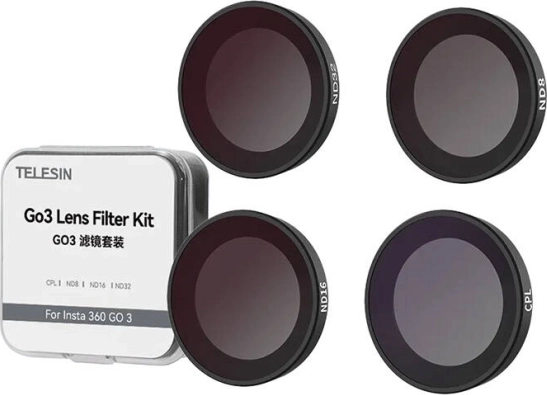 Zestaw TELESIN do INSTA360 GO 3 zawiera filtr polaryzacyjny CPL oraz neutralne szare filtry ND8/ND16/ND32, które wspólnie pomagają kontrolować ilość światła i ograniczać odblaski. Dzięki precyzyjnemu szkłu optycznemu SCHOTT i wielokrotnym warstwom nano uzyskasz ostre, czyste i wierne kolorystycznie ujęcia o profesjonalnym wyglądzie.