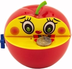 Ta plastikowa skarbonka imituje ulubione jabłko i jest idealna dla dzieci od trzeciego roku życia. Dzięki mechanicznemu nakręcaniu za pomocą kluczyka użycie jest zabawne i łatwe. Po wrzuceniu monety robaczek chwyta ją i zanosi do wnętrza jabłka, co motywuje dzieci do oszczędzania.
