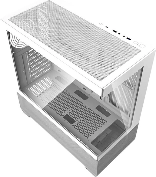 DARKFLASH DS900 Air to elegancki midi tower w białym kolorze z przednim i lewym panelem z hartowanego szkła, który efektownie eksponuje Twój zestaw. Dzięki przemyślanemu przepływowi powietrza, perforacjom i wsparciu dla nawet 7 wentylatorów łatwo utrzymasz niskie temperatury nawet przy wydajnych komponentach. Stabilne, trapezowe nóżki z podkładkami tłumiącymi minimalizują wibracje i poprawiają komfort pracy.
