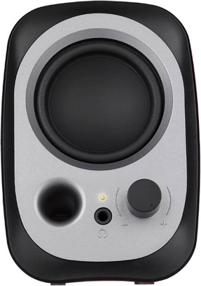 Wygodna regulacja głośności za pomocą wbudowanego pokrętła oraz uniwersalne wejście 3,5 mm AUX dla telefonu, tabletu czy odtwarzacza MP3 zapewniają komfort na co dzień. Stylowa czerwono-czarna obudowa o kompaktowych wymiarach pasuje do każdego biurka.